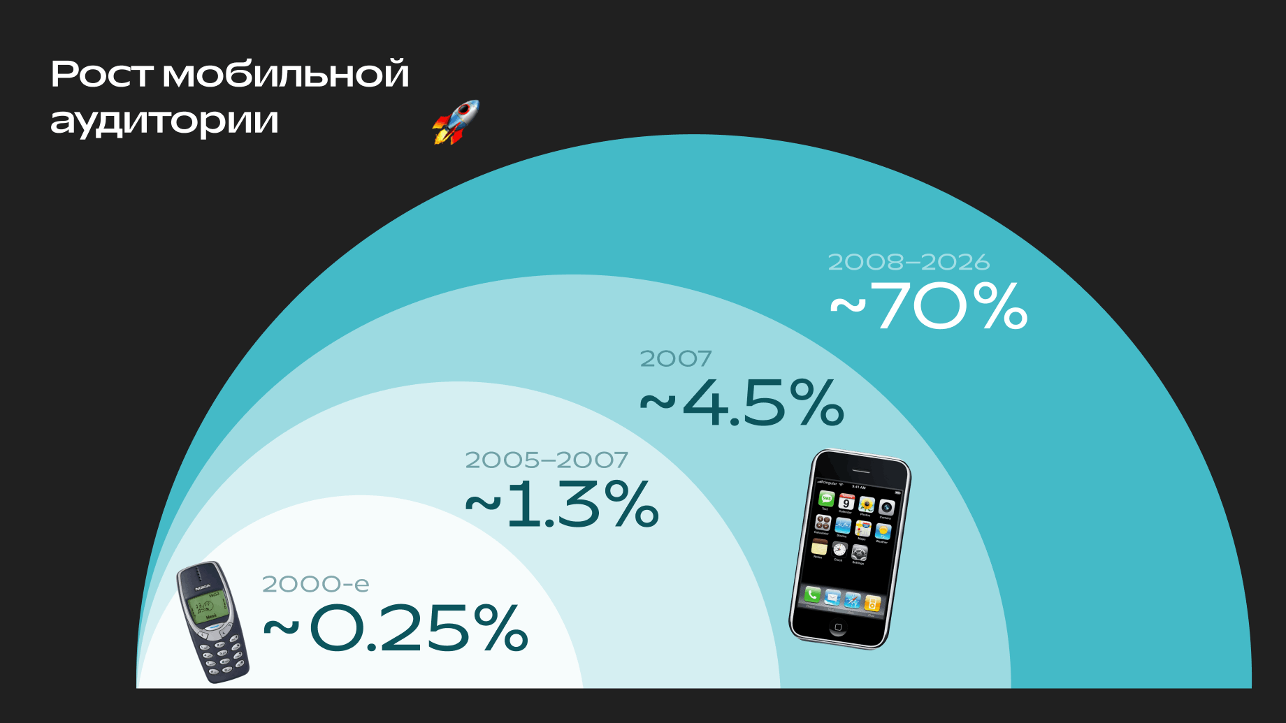 - 2026 — более 70 % пользователей заходят с мобильных устройств, смартфон становится основным экраном