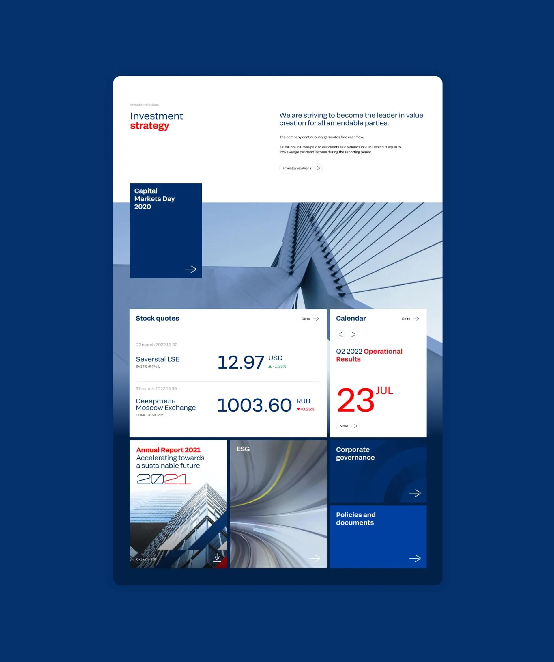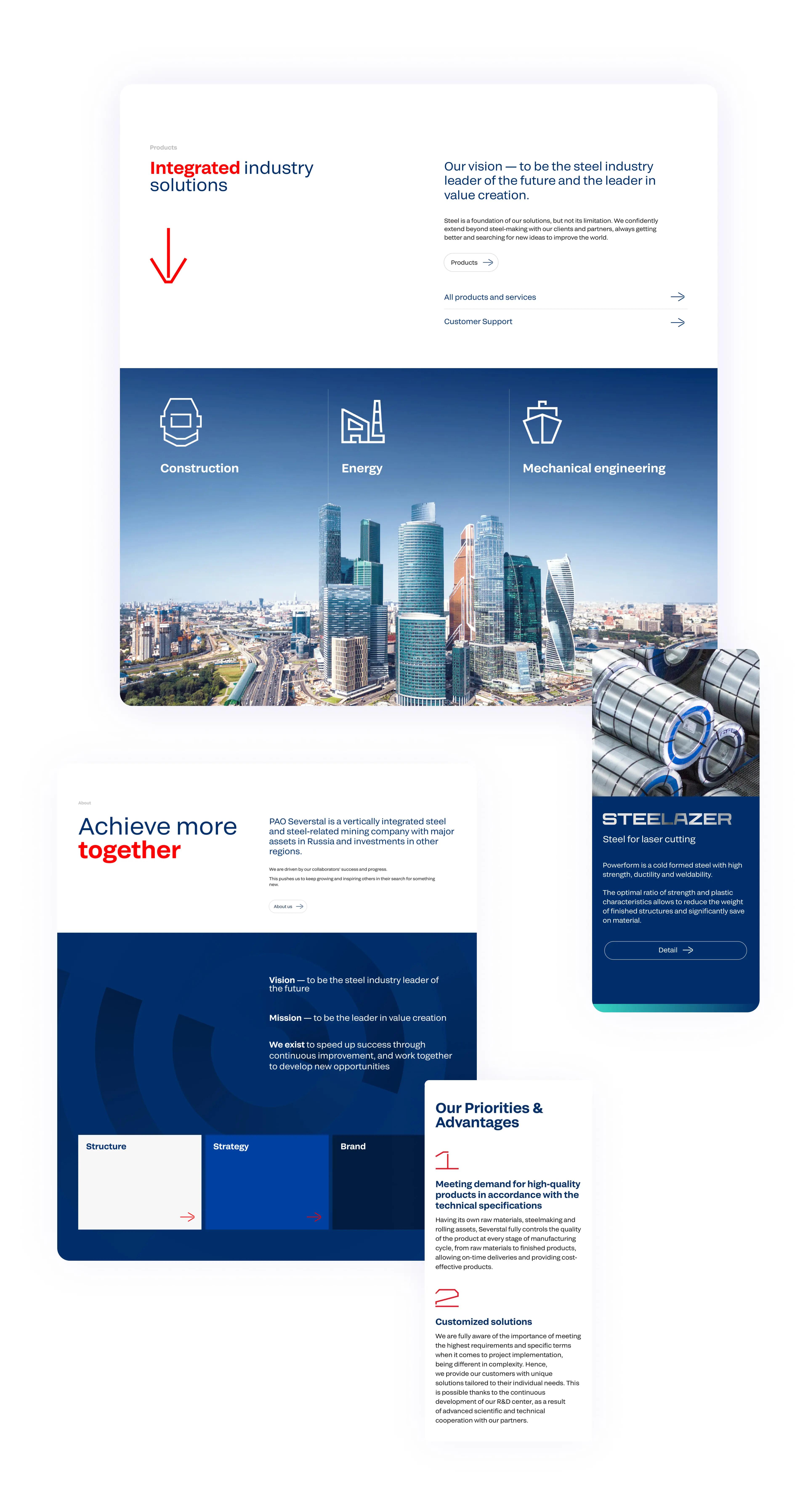 Severstal's corporate website is the result of thorough work at every stage. A serious service story with an emphasis on visual identity. At the same time, the complex architecture inside is supported by simple solutions outside — thanks to the elaborate structure of the unified design system and convenient block-by-block assembly.
