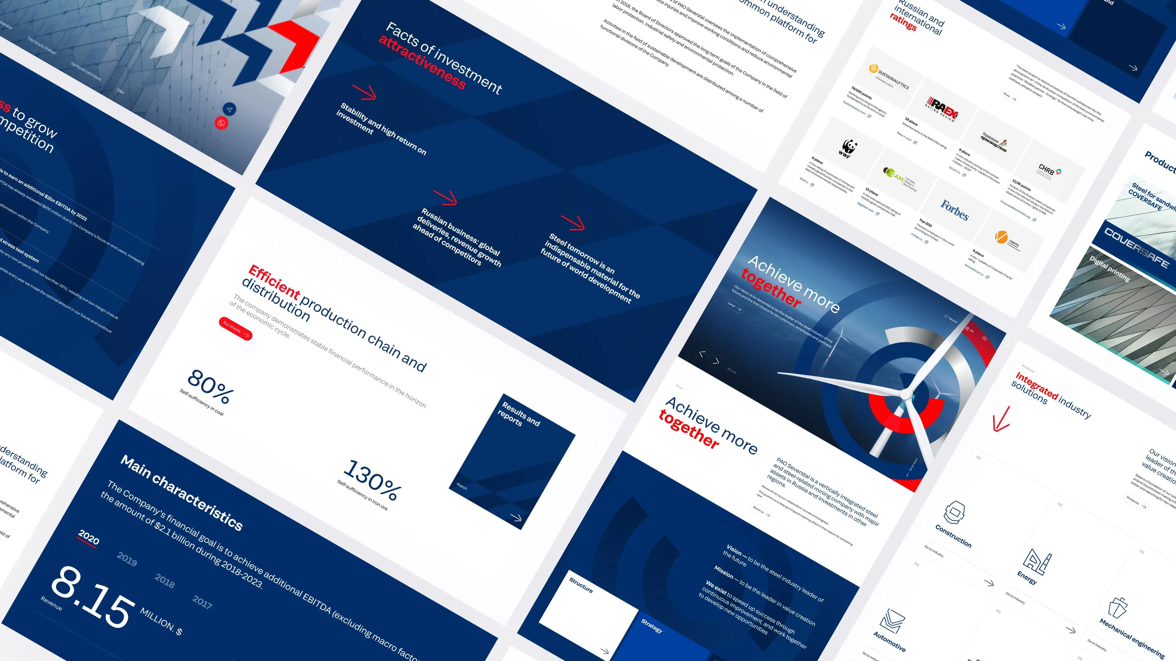 As part of our work on Severstal's product and service catalog, we designed 3D models for each product category. Special mention should be made of the work on the adaptation of Severstal's new brand book into digital, which was developed as part of a parallel project — the digital brand book, and affects the visuals of all the company's digital materials, including mobile applications, social networks, newsletters and other channels.