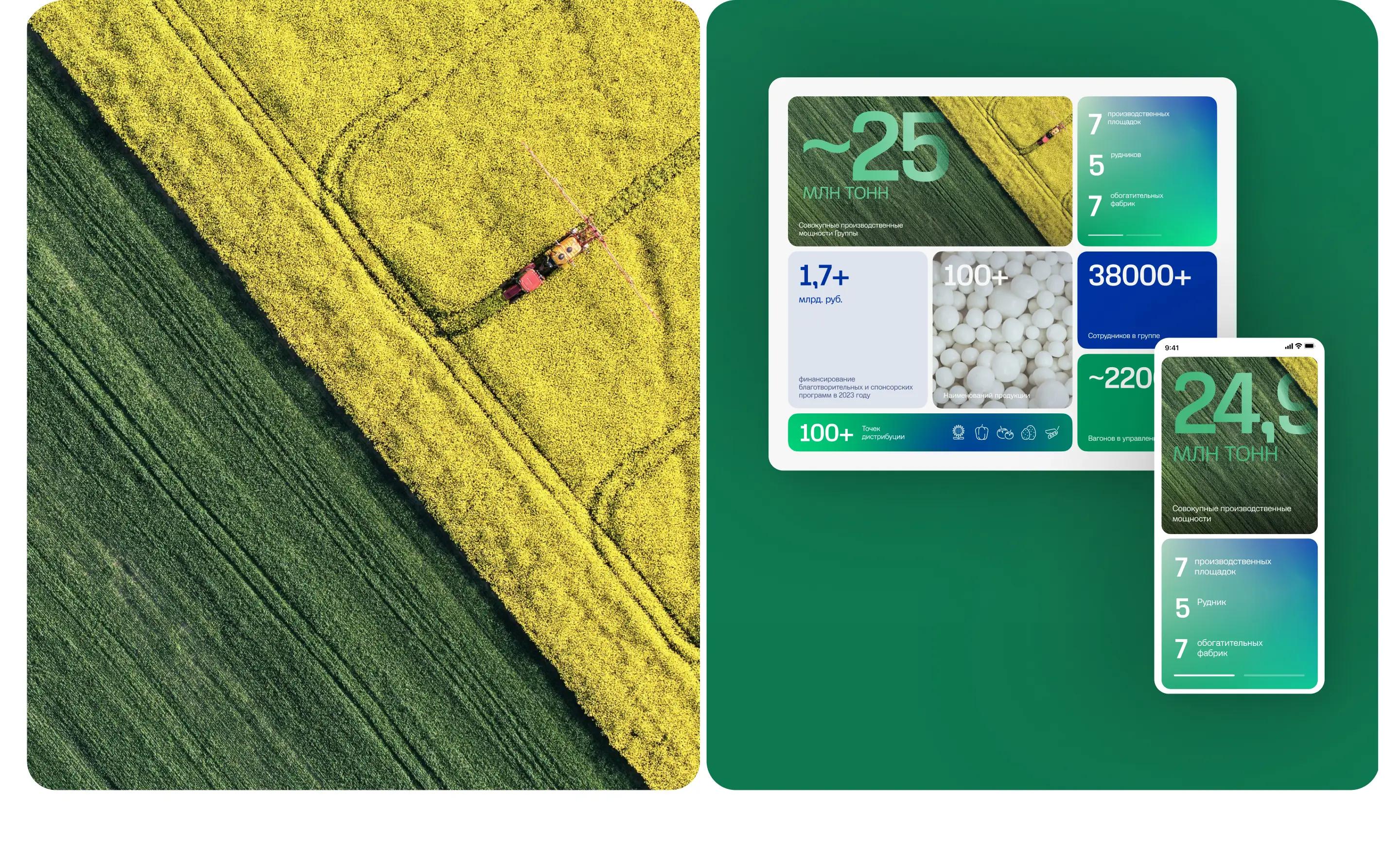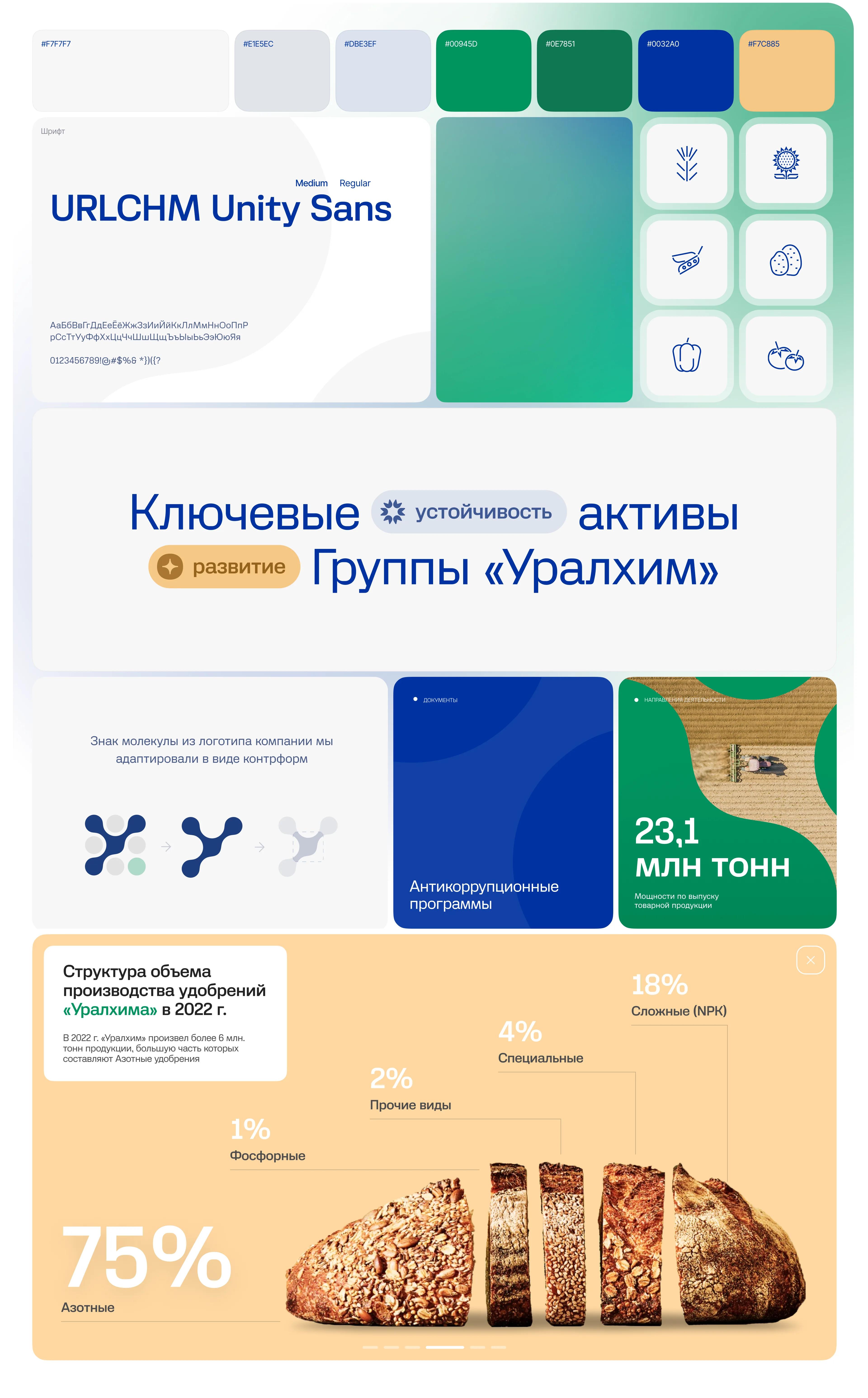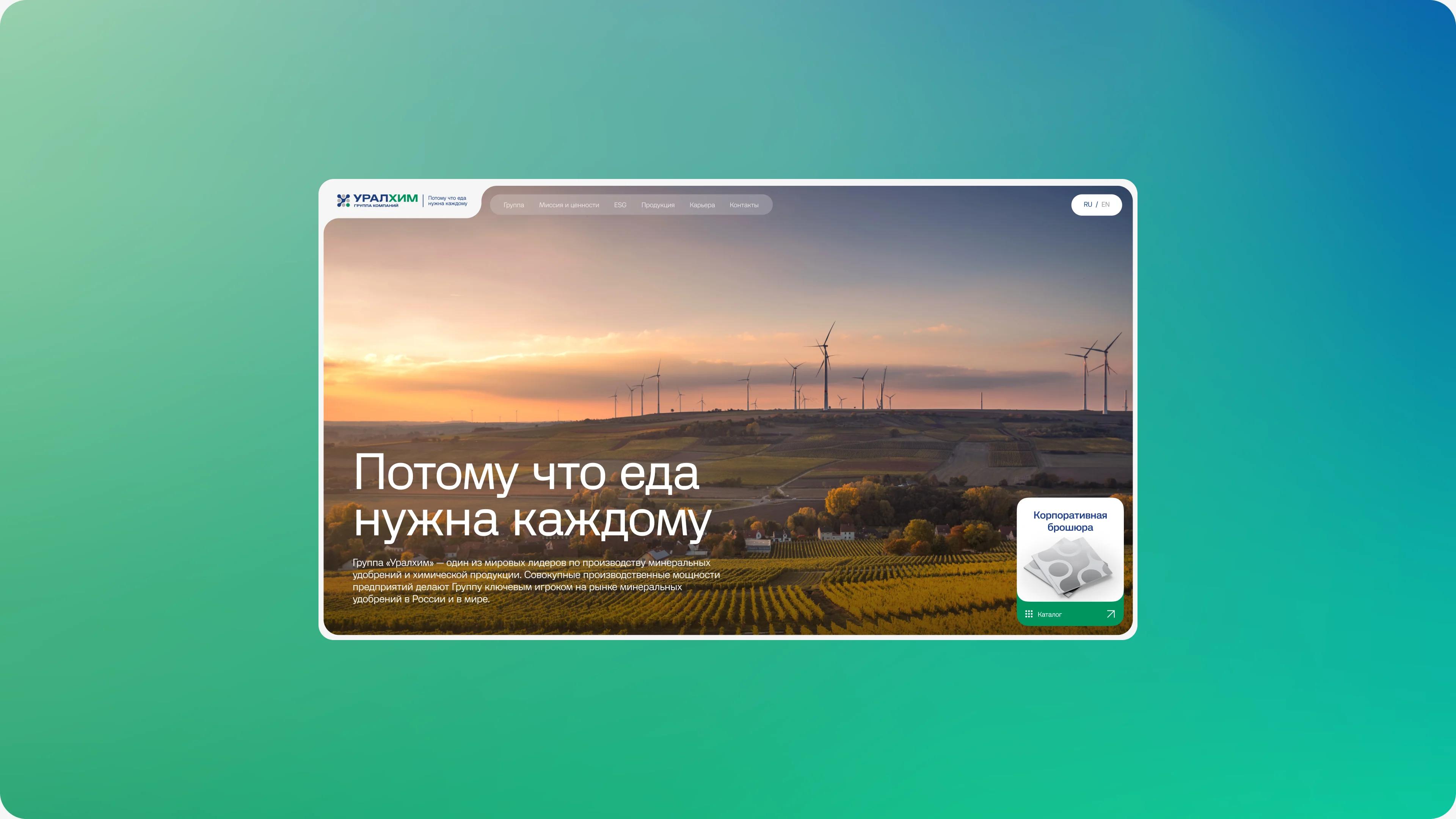 The Group includes Uralchem, Uralkali, and Togliattiazot. For a long time, they were positioned as separate brands. The new landing page was intended to unite the companies under a single mission and new positioning, reflected in the slogan «Because everyone needs food,» while maintaining recognizable elements of the identity.