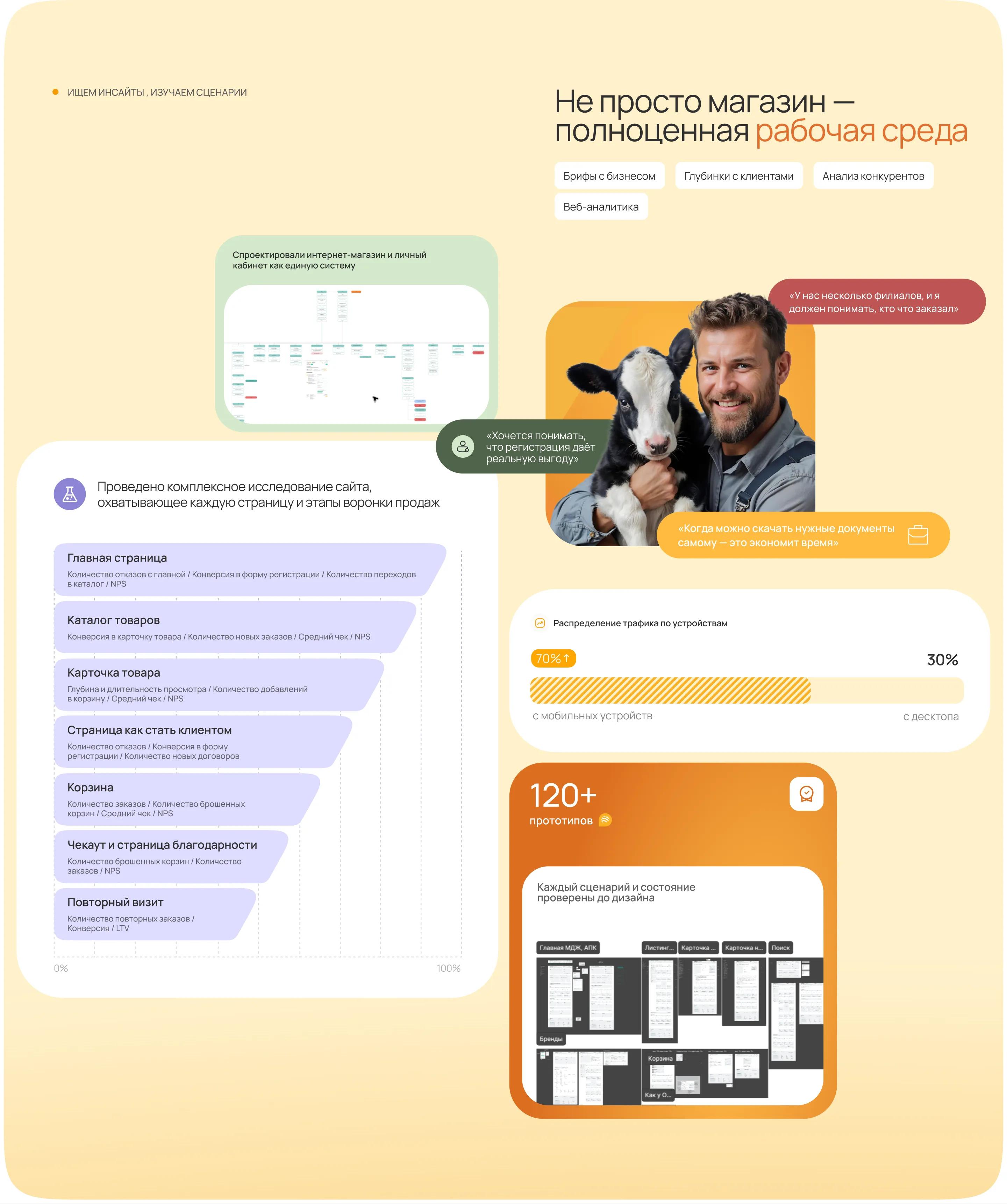 The analytics phase revealed the key findings: the website is in demand and actively used, but it does not support key customer workflows and does not address their primary concerns—as a result, a significant portion of processes remains outside the digital product.