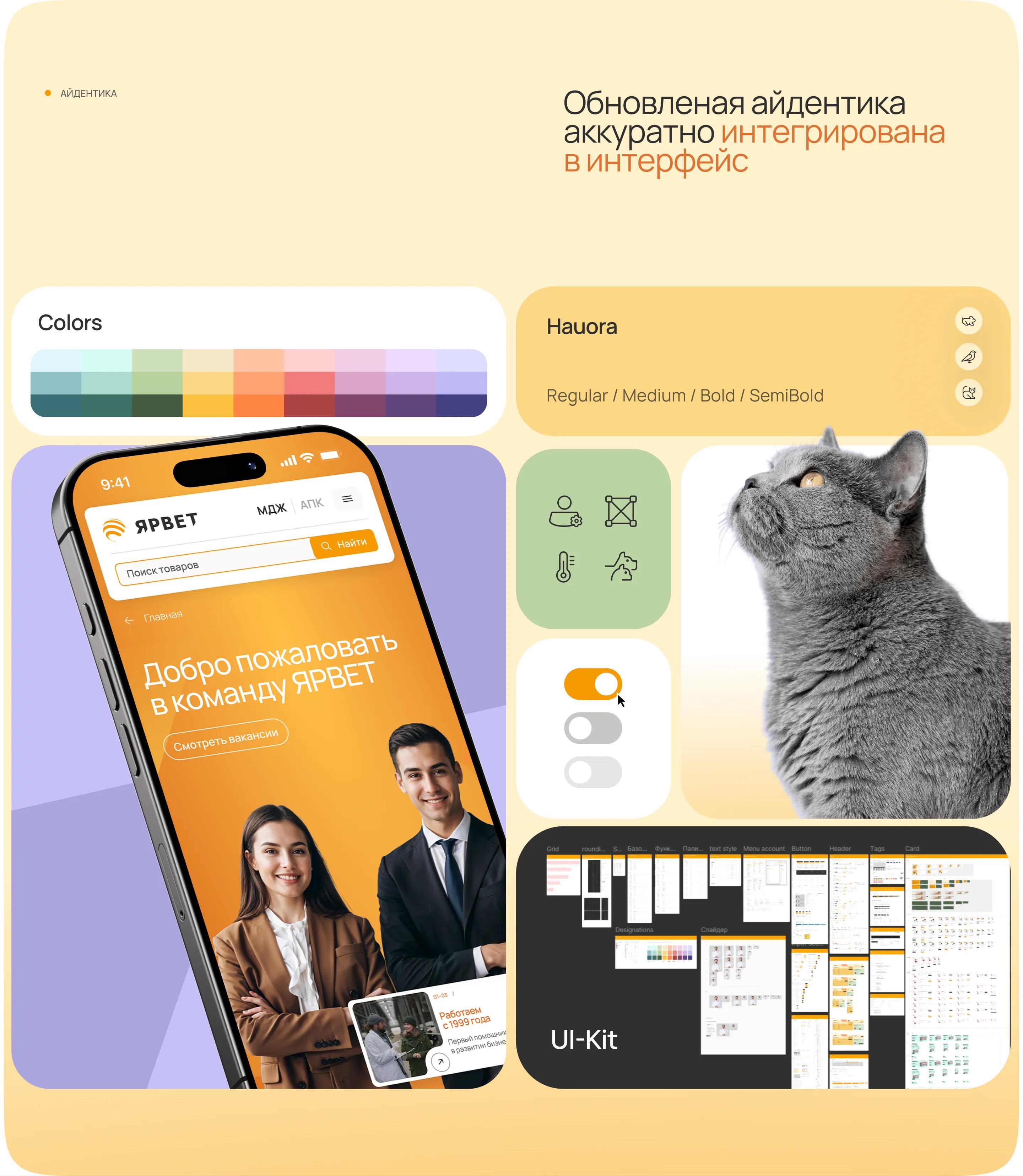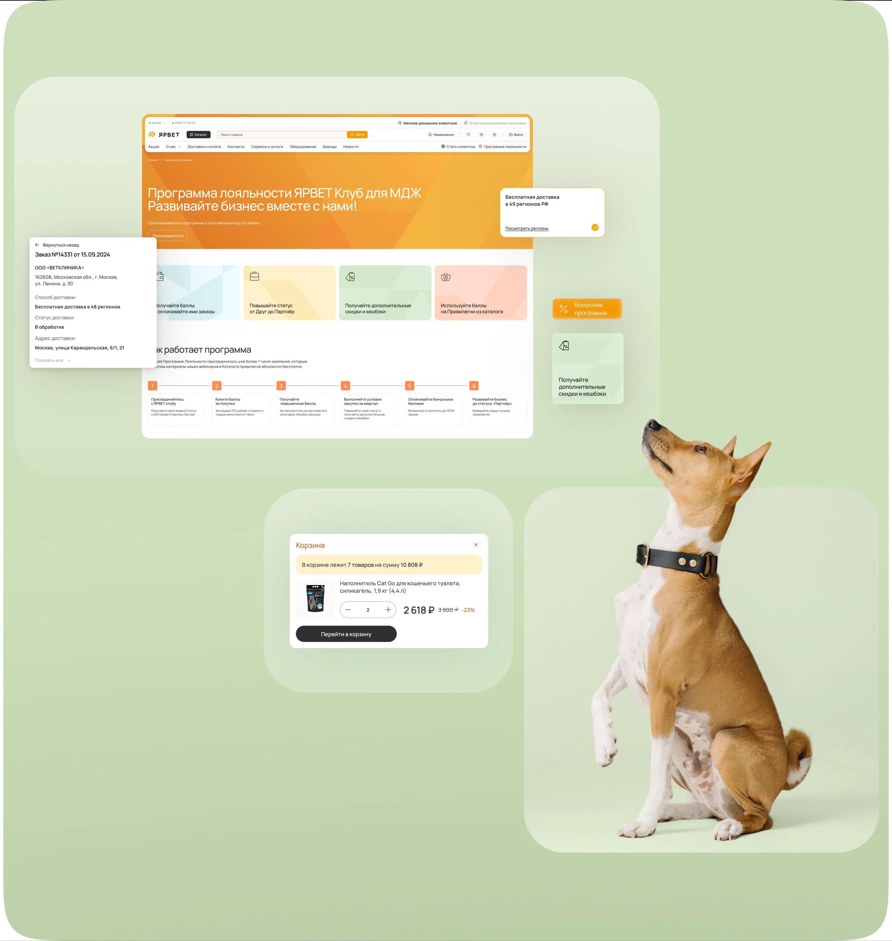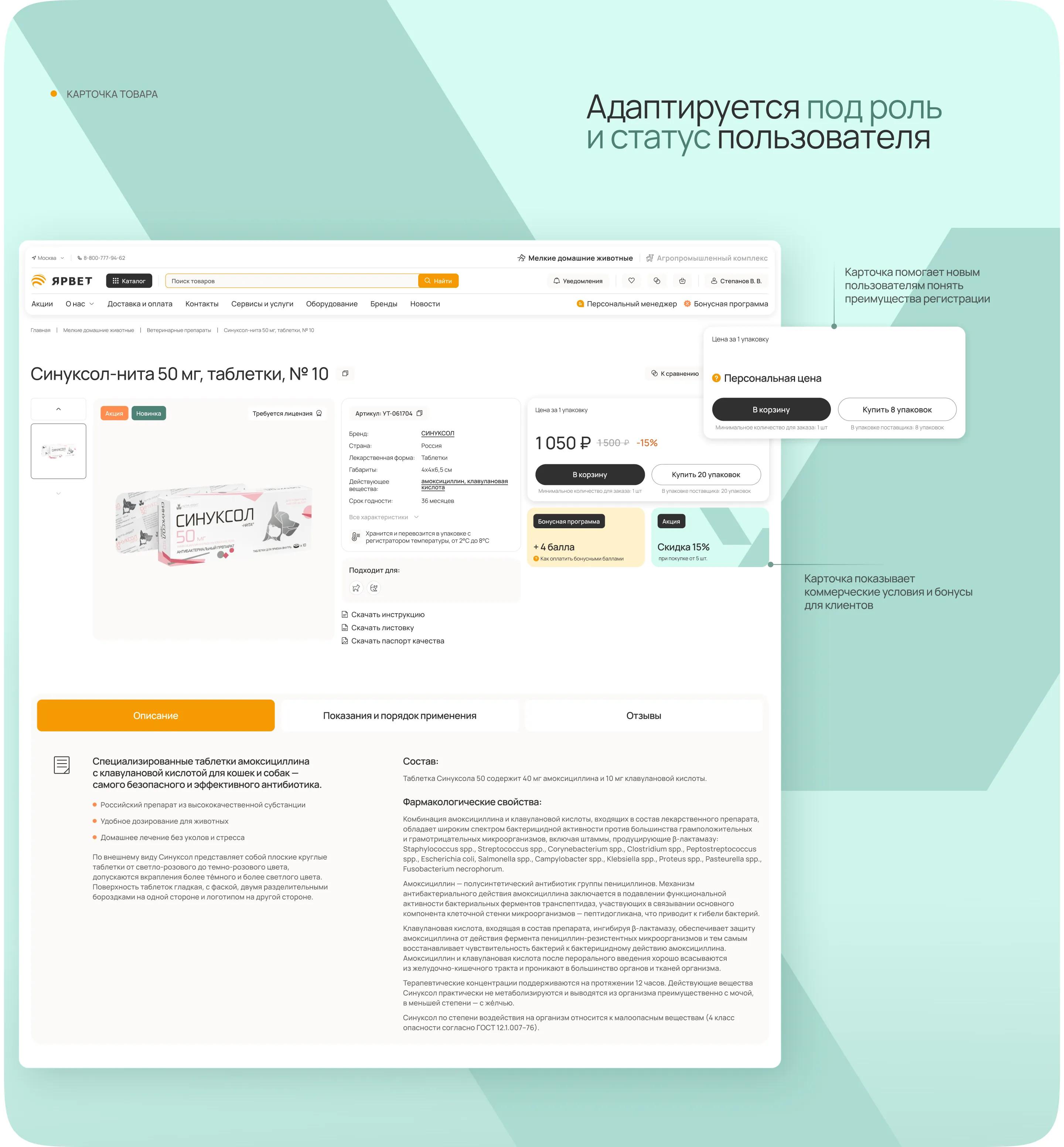 The website’s visual language became an extension of the «Yarvet» brand and its positioning as a technologically advanced and reliable partner. The brand identity was updated and seamlessly integrated into the online store and personal account interfaces—without compromising functionality and while maintaining the product’s practical nature.