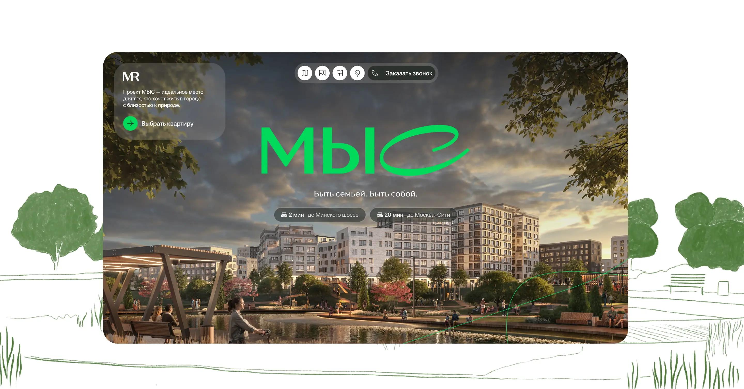 В результате, креативная концепция с использованием анимированных иллюстраций в сочетании с удобным выборщиком позволили погрузить пользователей в тот мир, который их ждёт внутри загородного кластера МЫС, и сделать первый шаг к покупке квартиры мечты.