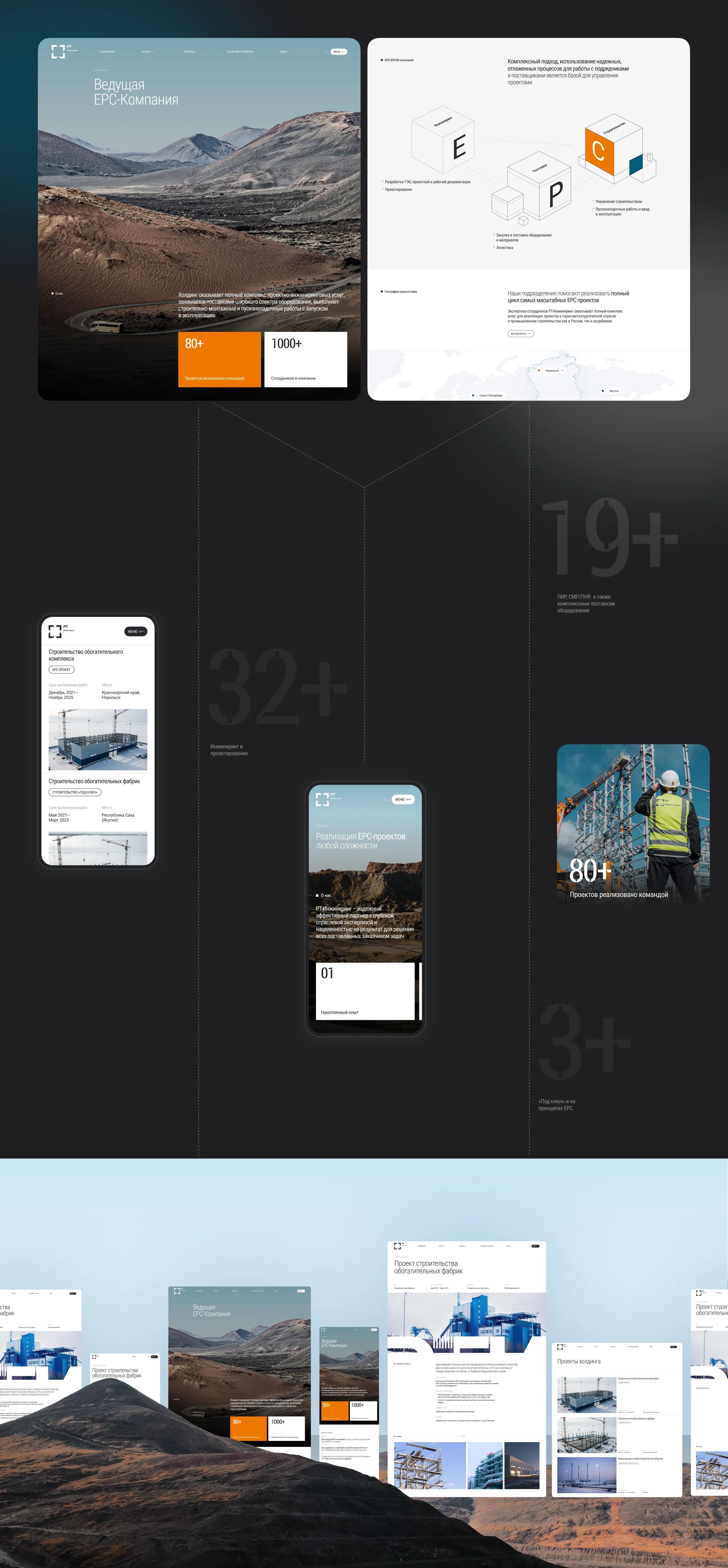 Переосмыслили классический корпоративный сайт, адаптировав визуальный язык брендбука для digital-среды: сохранили индустриальную строгость, усилили модульную архитектуру и добавили выразительности.