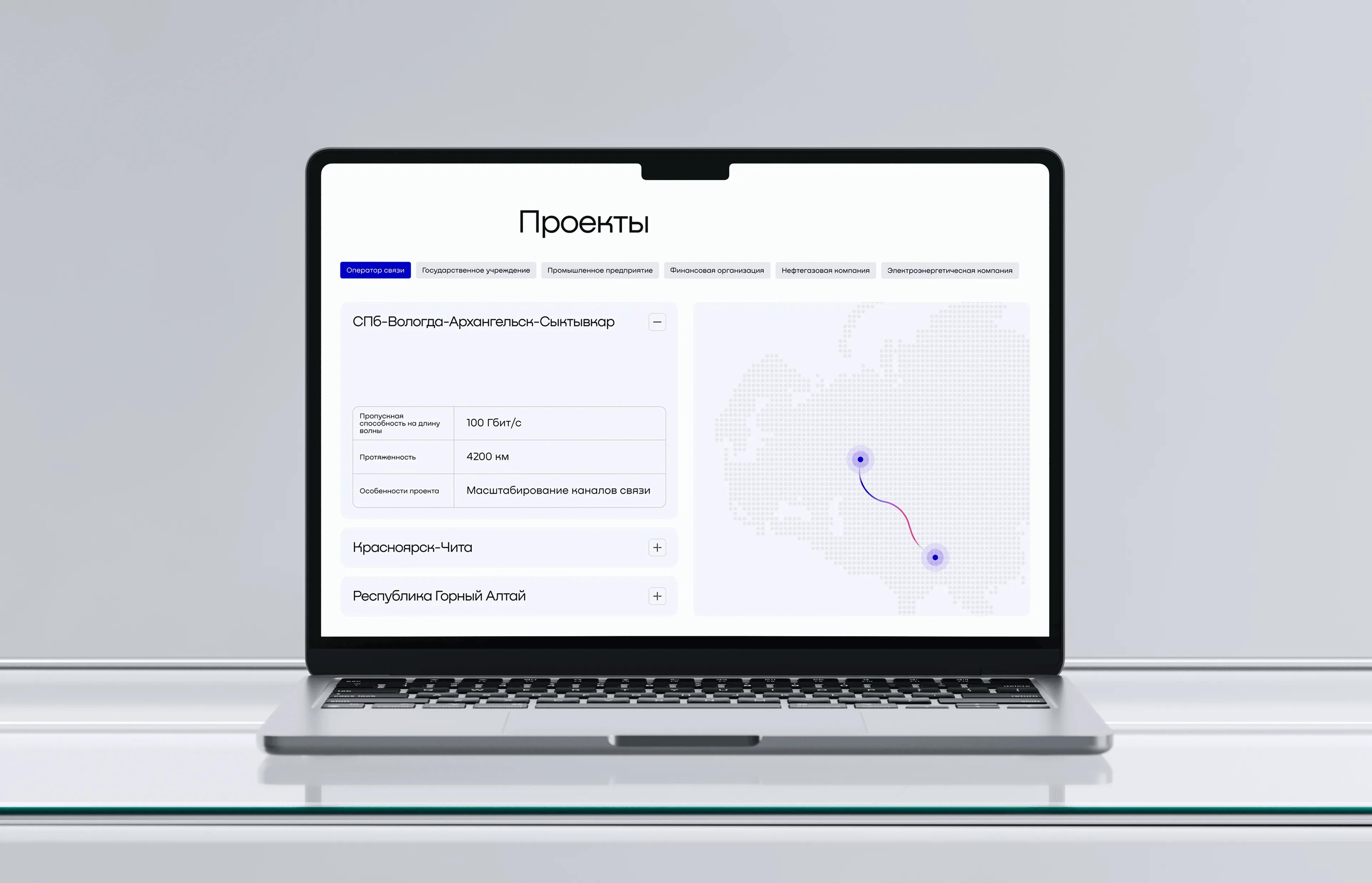 Интерактивная таблица проектов на главной странице обновляется через админку: достаточно заменить данные, и эффекты анимации генерируются автоматически. Система управления контентом позволяет гибко редактировать новости, проекты и вакансии.