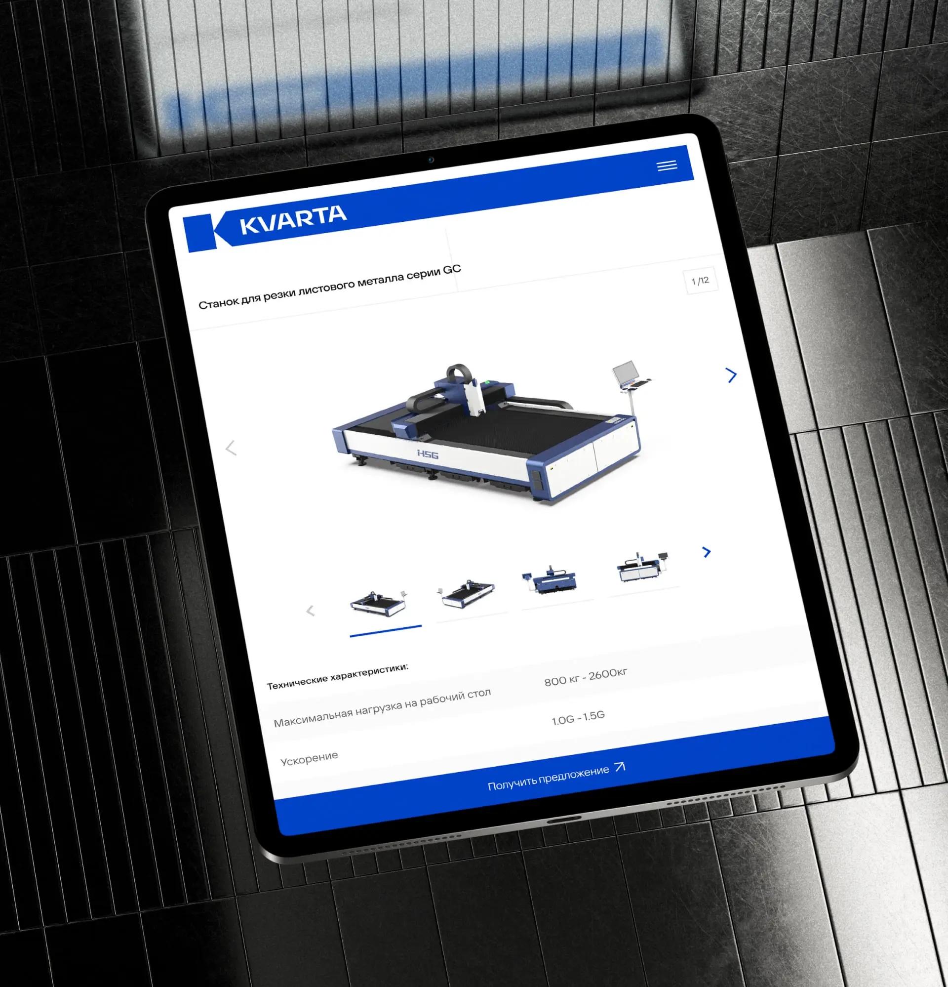 Компания Kvarta занимается доставкой, запуском и обслуживанием высокотехнологичного оборудования для обработки металла.